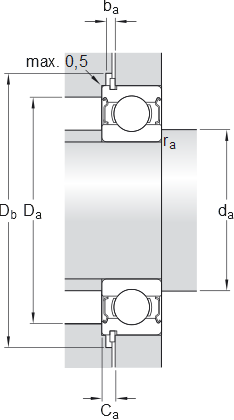 | Ca | max. 3.58 mm | 外圈侧面-止动环背面的间距 |